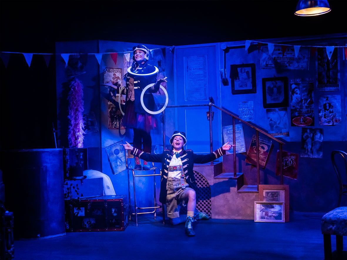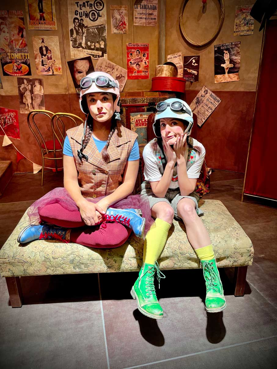 Se presenta el miedo, pero enseguida lo meten al bolsillo, cuando entre objetos, telas y baúles descubren los mundos de Shakespeare, cuando entre floretes recitan a Quevedo o se convierten en artistas de Circo, cuando bailan al son de un Cabaret o recuerdan a Espronceda creyendo ser dos grandes piratas, o cuando los títeres se hacen pasar por Moliere y Oscar Wilde.
